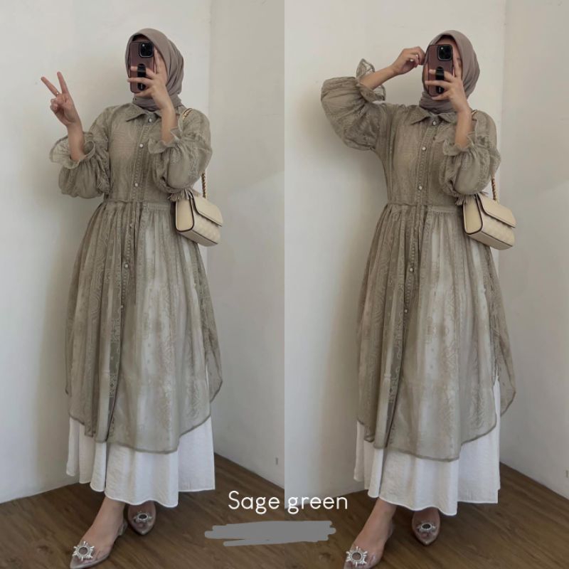 Outer Long Outer Cardigan Brukat Renda Lace Malika Import Premium Murah