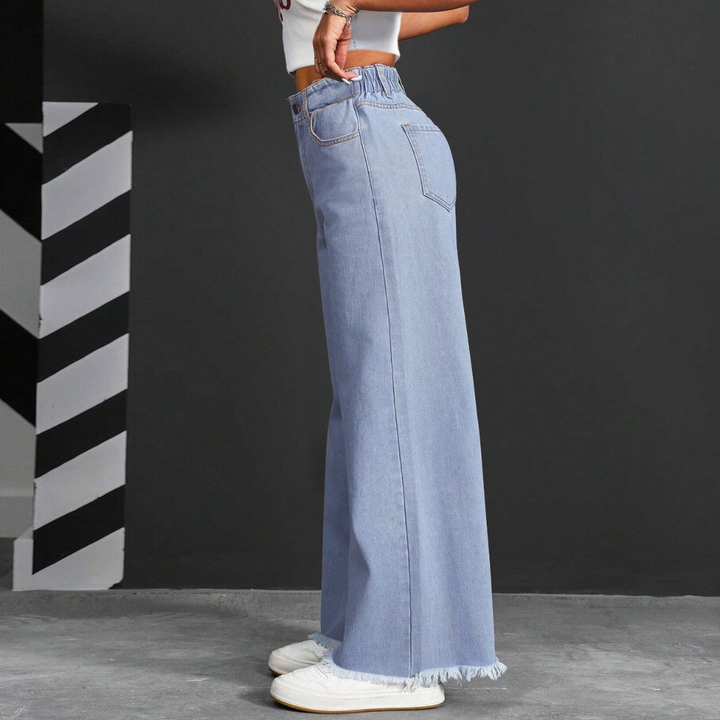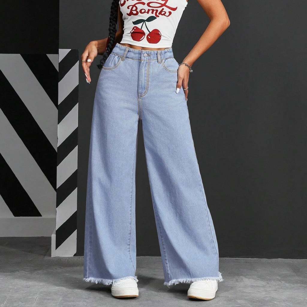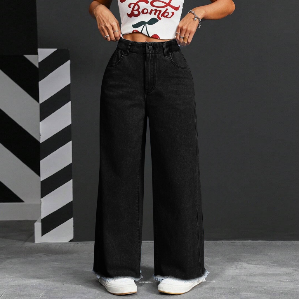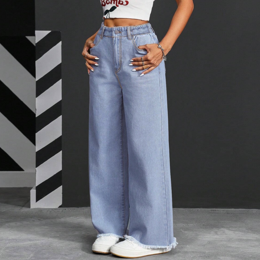 Jeans Baggy High Waist Plus Size Korean Style Pinggang Getah Seluar Baffel Jeans Wanita Denim