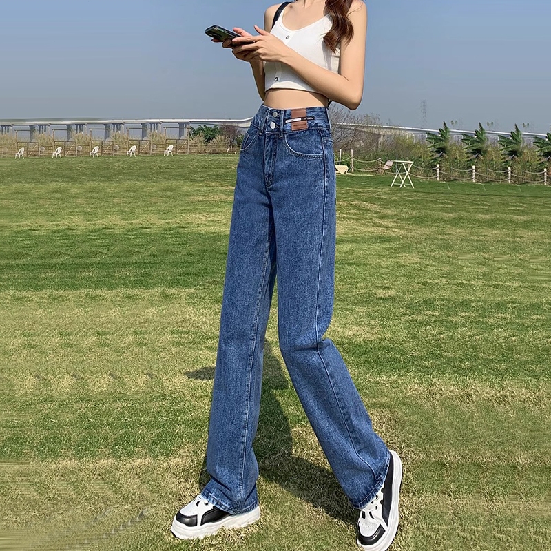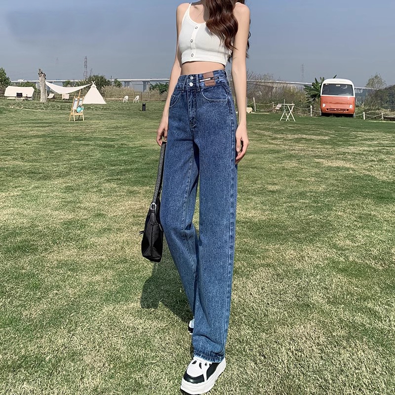 Celana jeans wanita high waist jeans celana kulot wanita celana panjang wanita murah celana panjang wanita santai Kain cuci biru