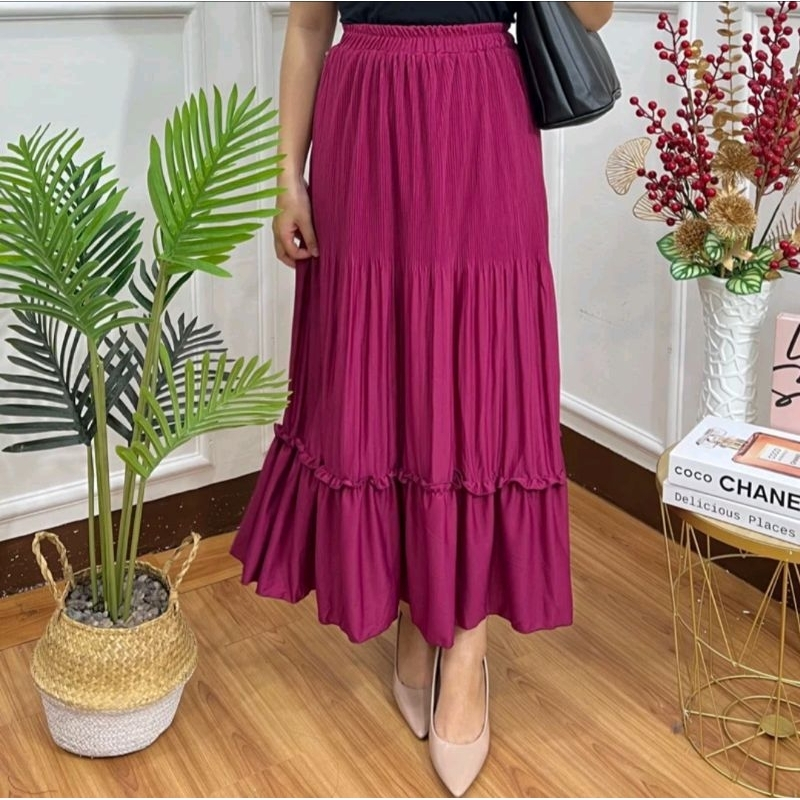 ROK SKIRT CLARA BAHAN HYGET PREMIUM ROK PLISKET SUSUN TERBARU