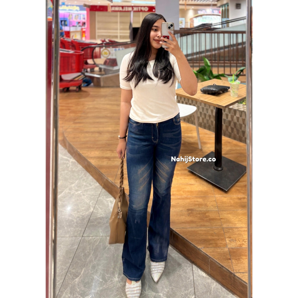 Highwaist Cutbray Jeans Retro Whisker Vol. 2 - Celana Jeans Cutbray Wanita Highwaist Kekinian Strech Premium