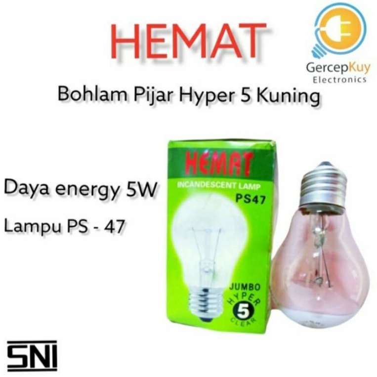 Lampu Bohlam Pijar Hyper 5 Watt / 5W Kuning HEMAT ISI : 10 PCS