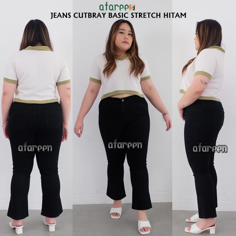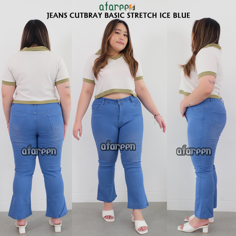AFAREEN - Jeans Cutbray Polos Jumbo Celana Panjang Jeans Cutbray Plus Size 35-43