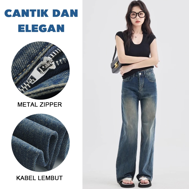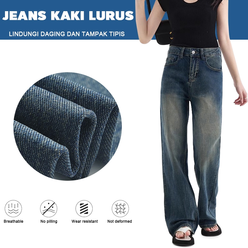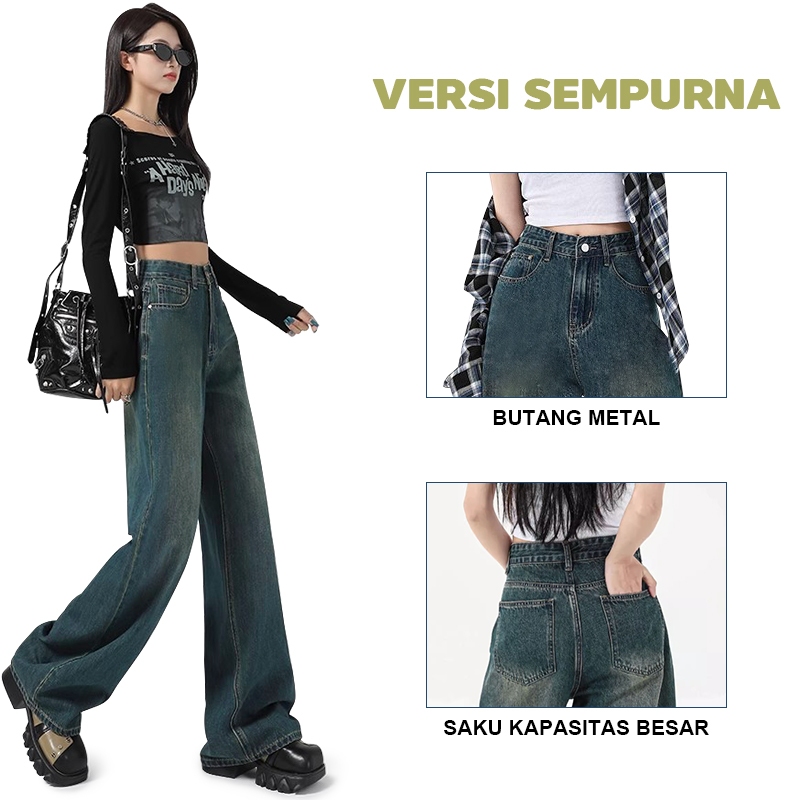 VV - Clothg - Baru Loose Jeans Celana jeans wanita-Celana jins warna retro celana jeans biru