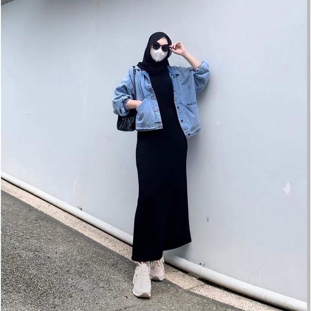 Inner Dress Panjang Bahan Jersey Tanpa Lengan - Iner Gamis Wanita Premium