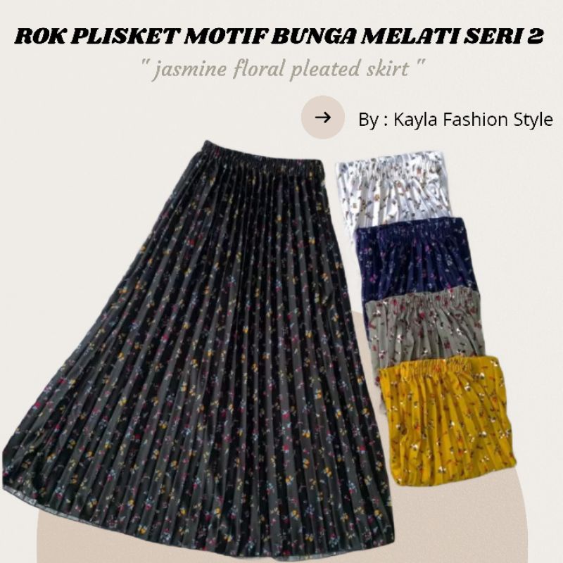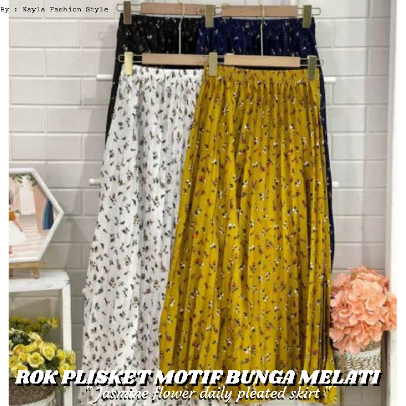 ROK PLISKET PREMIUM MOTIF BUNGA MELATI LILY DAISY TERLARIS