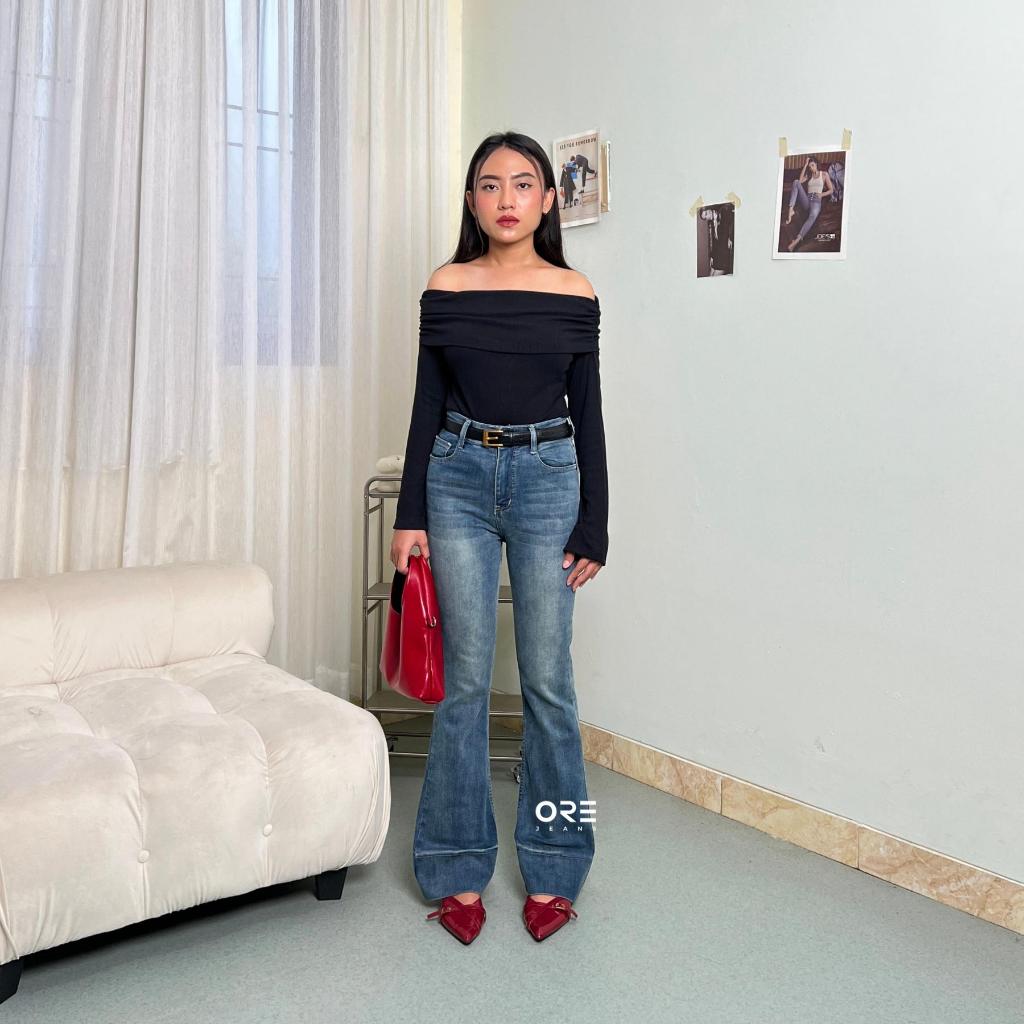 ORE - Jennie Cutbray Jeans Highwaist Lipatan Kaki Besar Jeans Strecht
