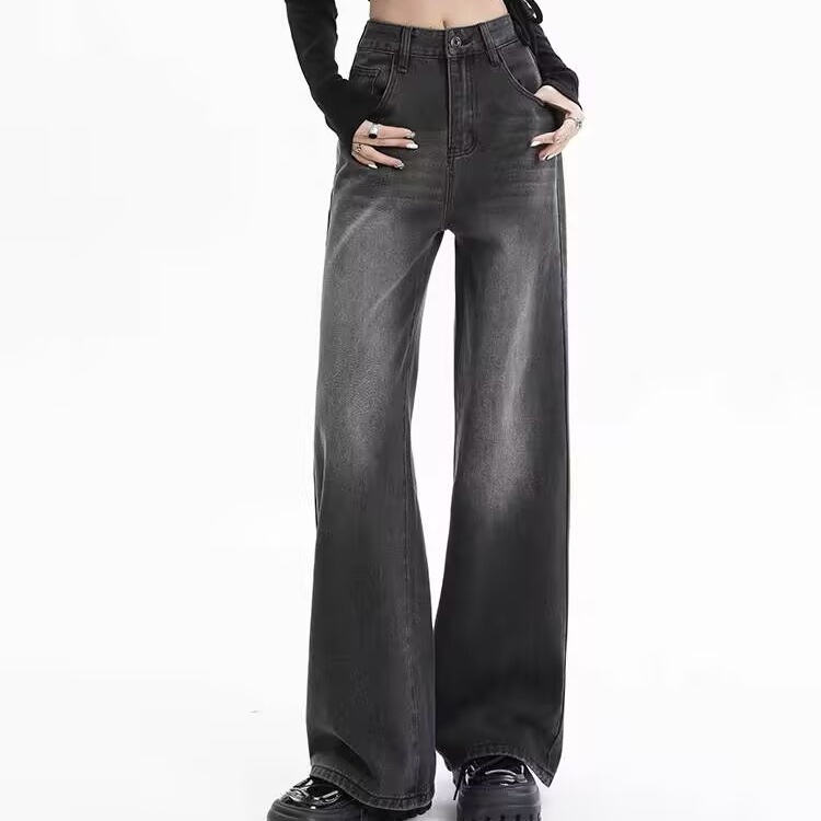 KATERMEN Jeans Ukuran Besar-Celana Denim Wanita - Jeans Lurus Retro Korea - Jeans Pinggang Tinggi