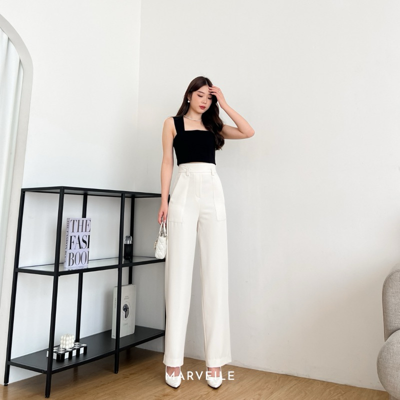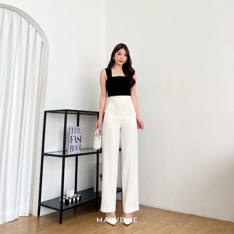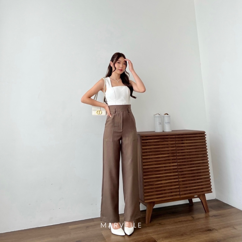 [ Marveile ] Diora Highwaist Pants / Kulot Straight Cut Pants Wanita