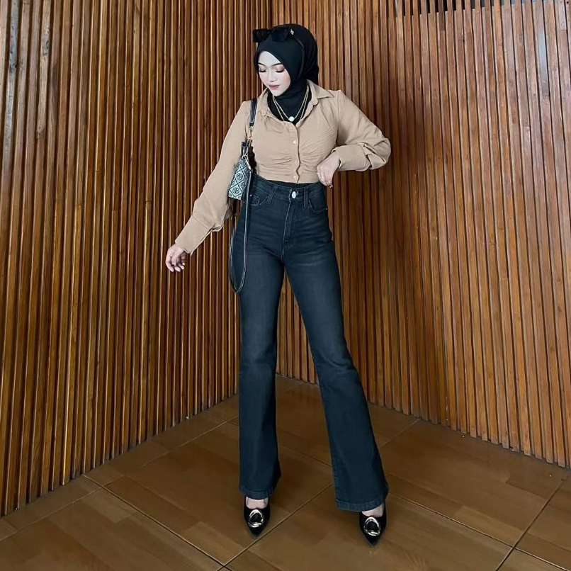 Highwaist Cutbray Jeans Retro 114 - Celana Jeans Cutbray Wanita Super Premium