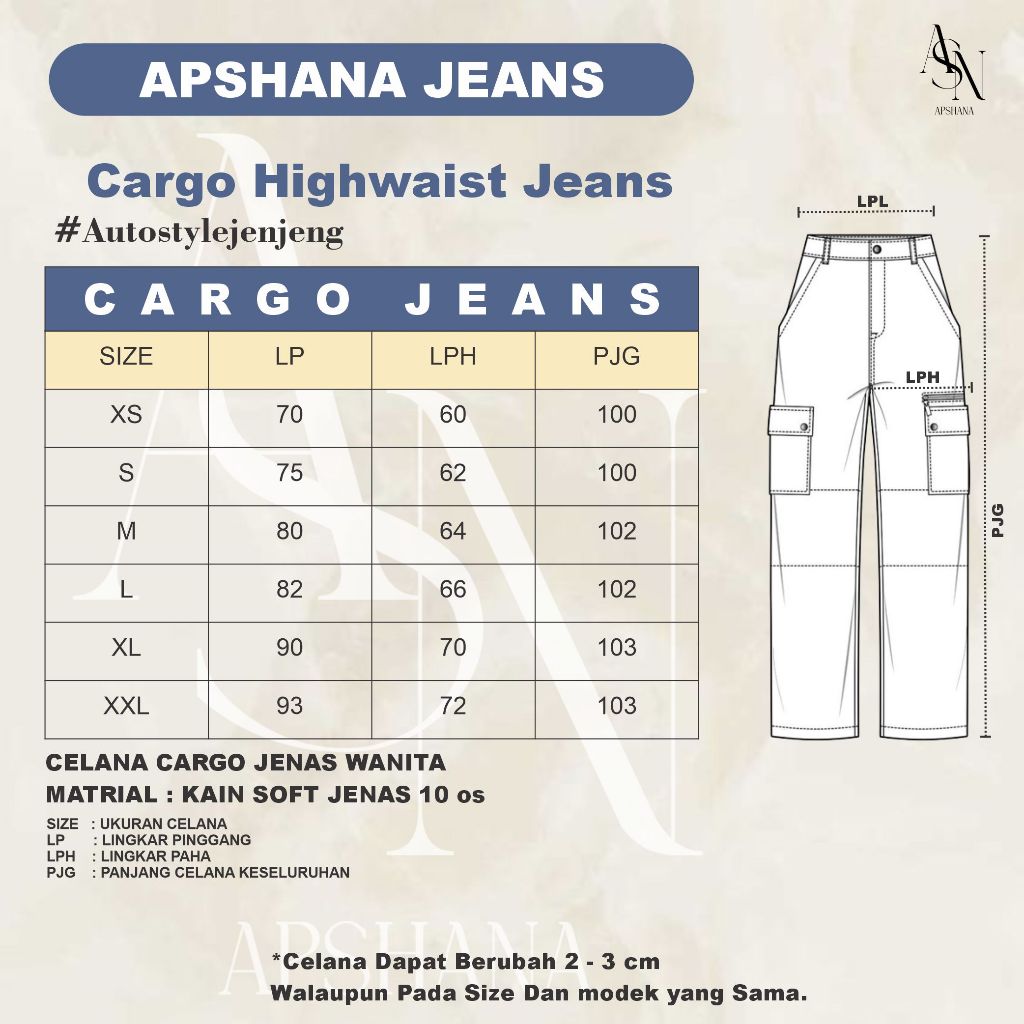 Apshana Jeans - Celana Cargo Jeans Wanita Highwaist Loose pants Celana Jeans Cewek Celana Cargo Denim ( realpict )