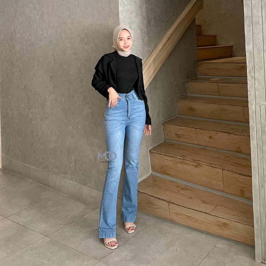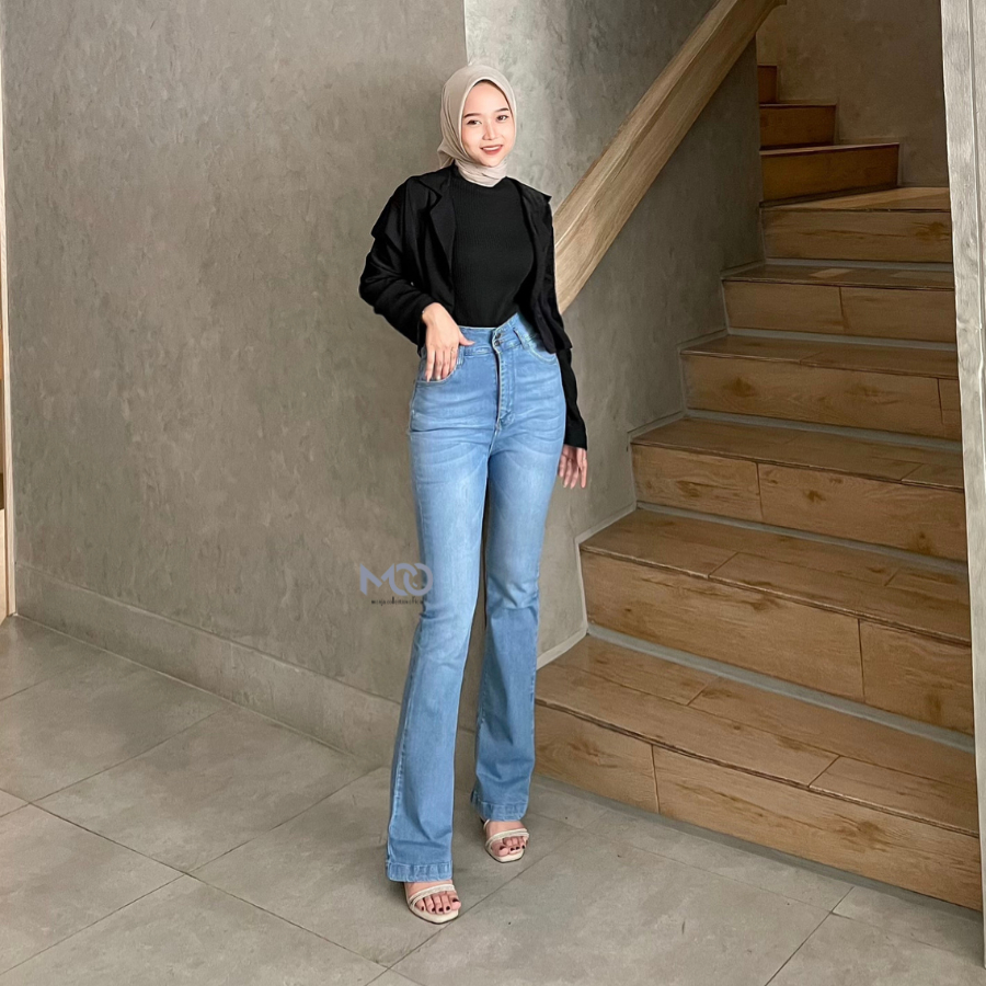 [MCOJEANS] HW CUTBRAY LIVY LONG PANTS JEANS STRETCH DARK BLUE KANCING 2 BOOT CUT
