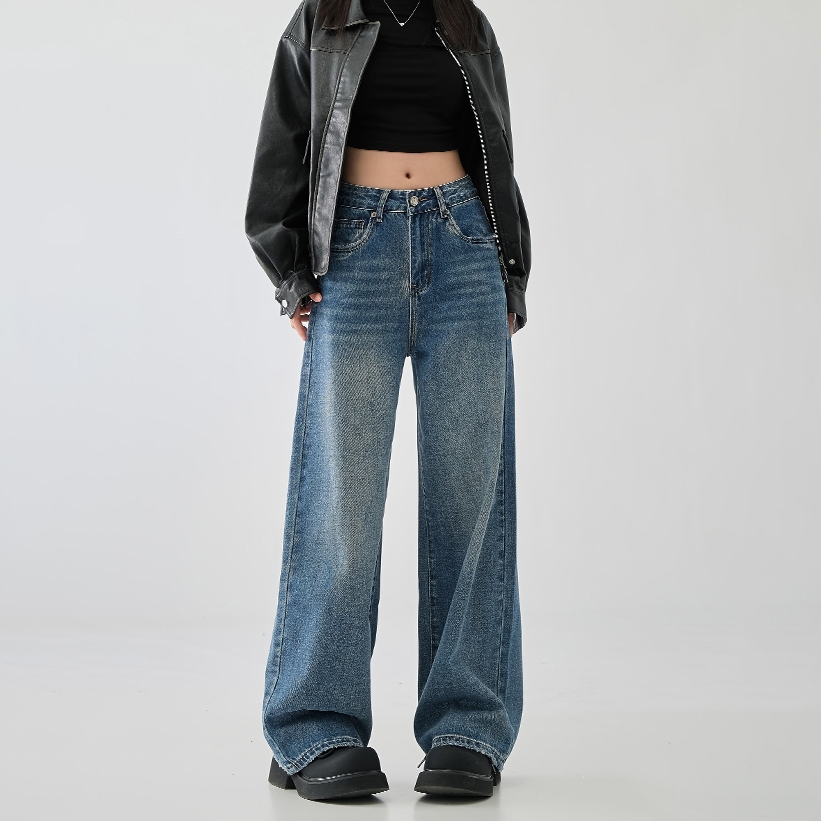 [Stok Siap] Celana jeans panjang wanita pinggang karet celana kulot wanita celana baggy pants wanita celana jeans wanita jumbo