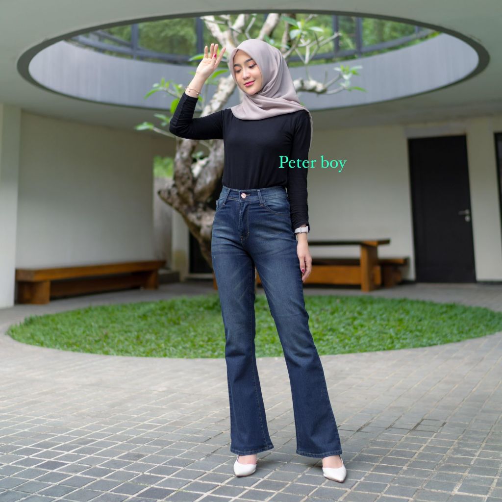 Highwaist Cutbray Jeans Retro - Celana Jeans Wanita Cutbray Premium