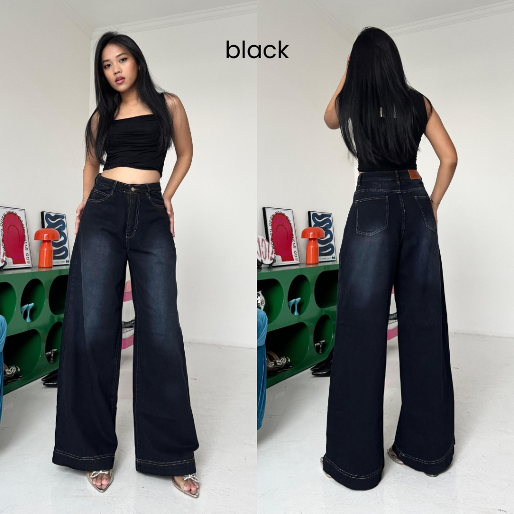 LADOUCE - Brianna High Waist Baggy Wide Jeans Celana Panjang Wanita Denim