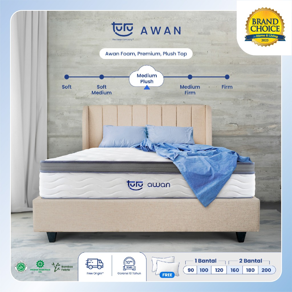 Kasur TURU AWAN Plush Top Hybrid Premium Awan Memory Foam Pocket Spring Medium Soft Plush Feel