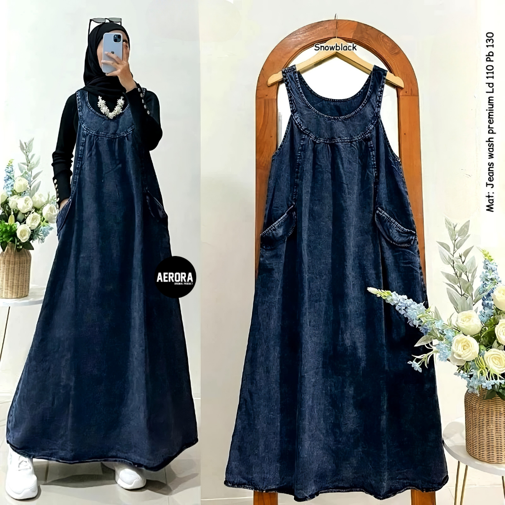 Aerora Baju Kodok Overall Overal Dress Rok Panjang Jeans Wanita Korean Style Polosa Overall Allsize