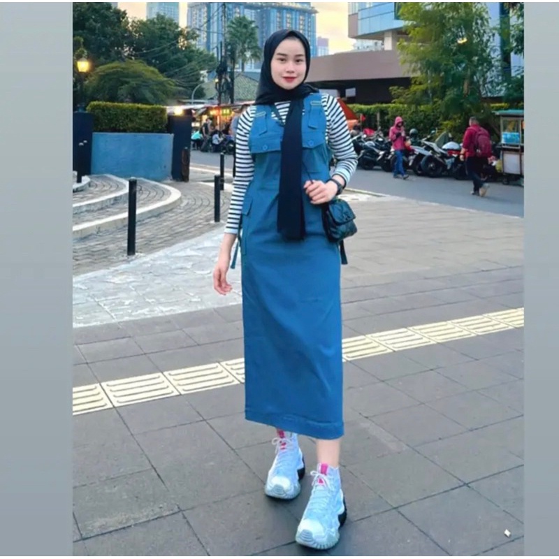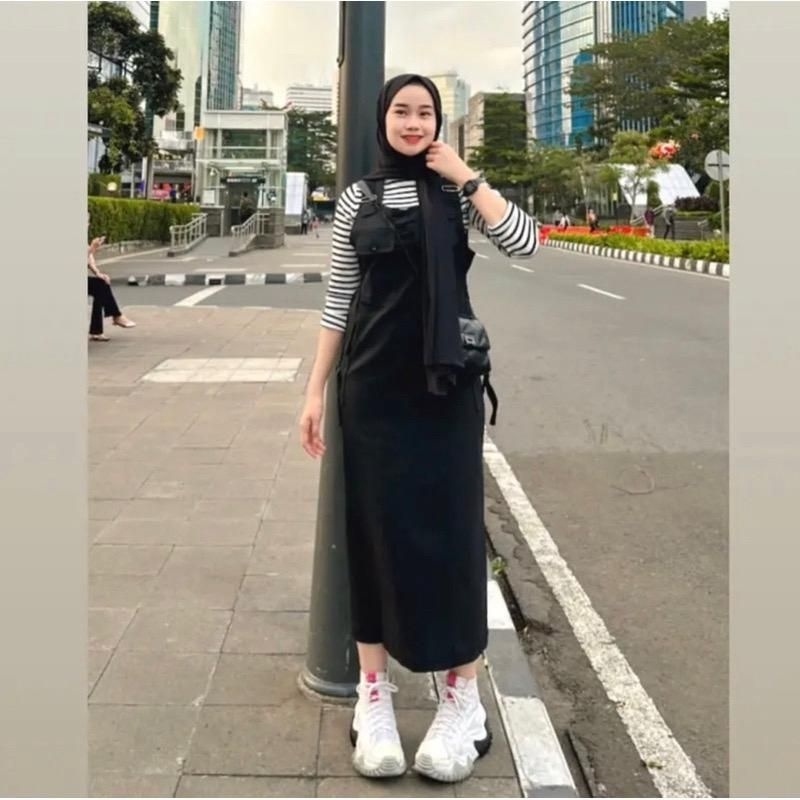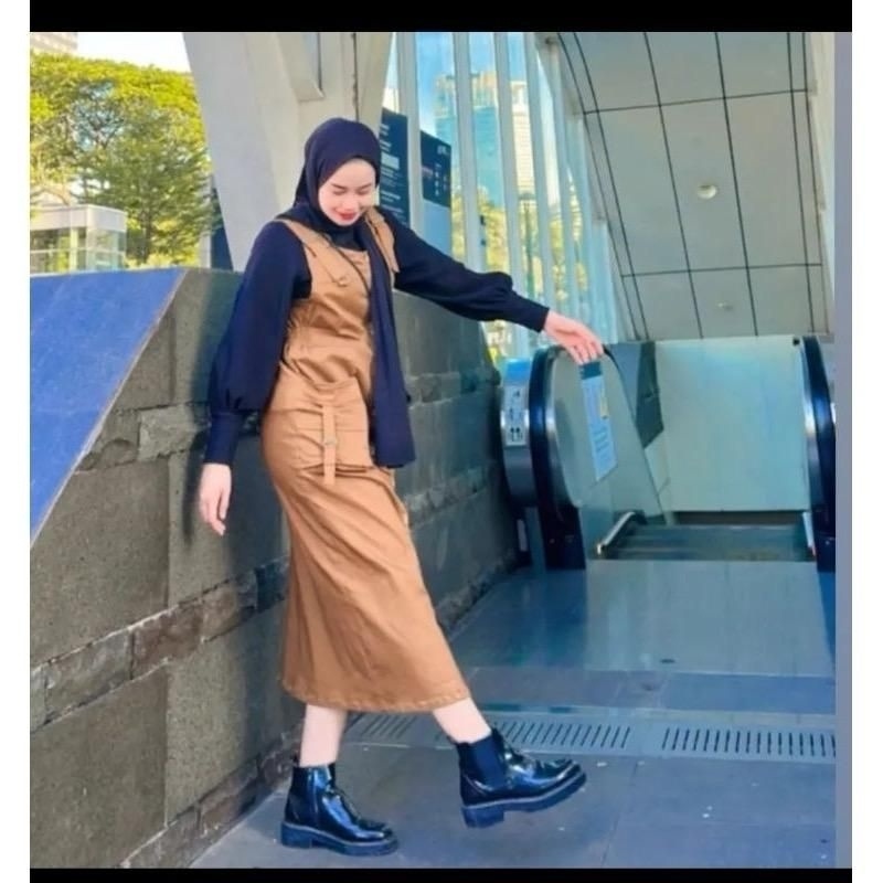 Sonya Overall Rok Muslimah Jumpsuit Korean Style Twill Combed Strecth Wanita Remaja Dewasa