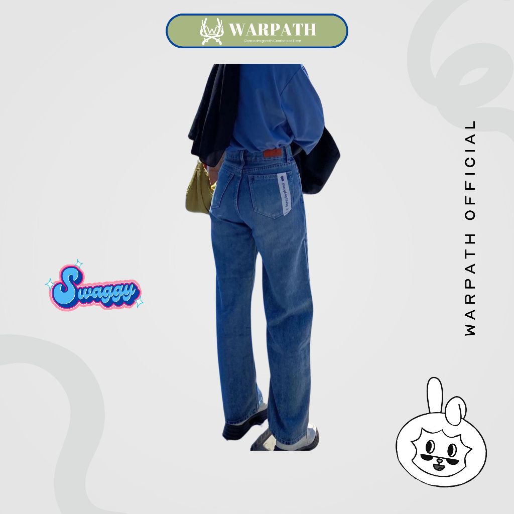 WARPATH - Highwaist Straight Jeans Loose Swaggy 8122 Celana Jeans Wanita Dark Blue