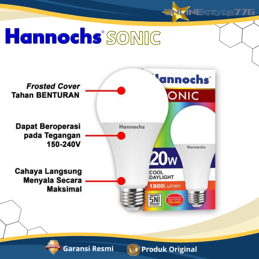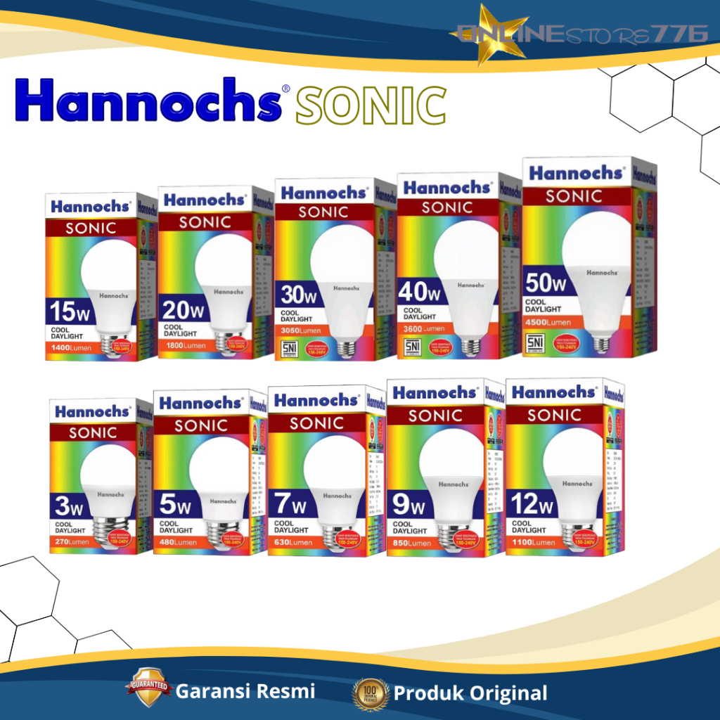 Bohlam Lampu LED Hannochs Sonic 3W 7W 9W 12W 15W 20W 25W 30W Cahaya Putih - GARANSI RESMI 1 TAHUN