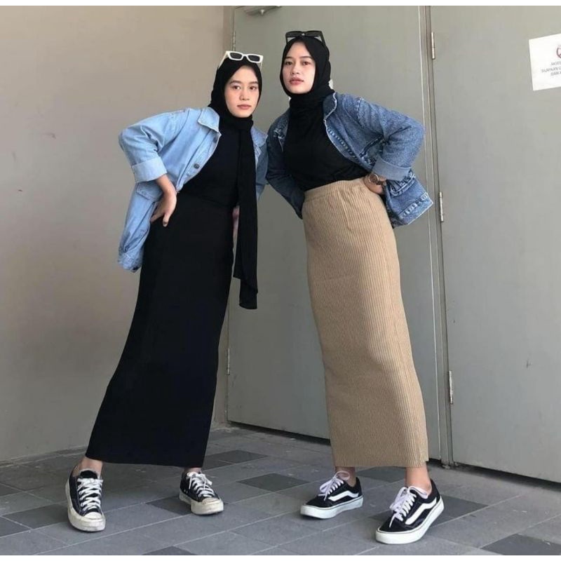 BISA ROK RAJUT SPAN PANJANG PREMIUM/ROK SPAN KERJA WANTA/ROK WANITA MUSLIM/ROK SPAN KNITED