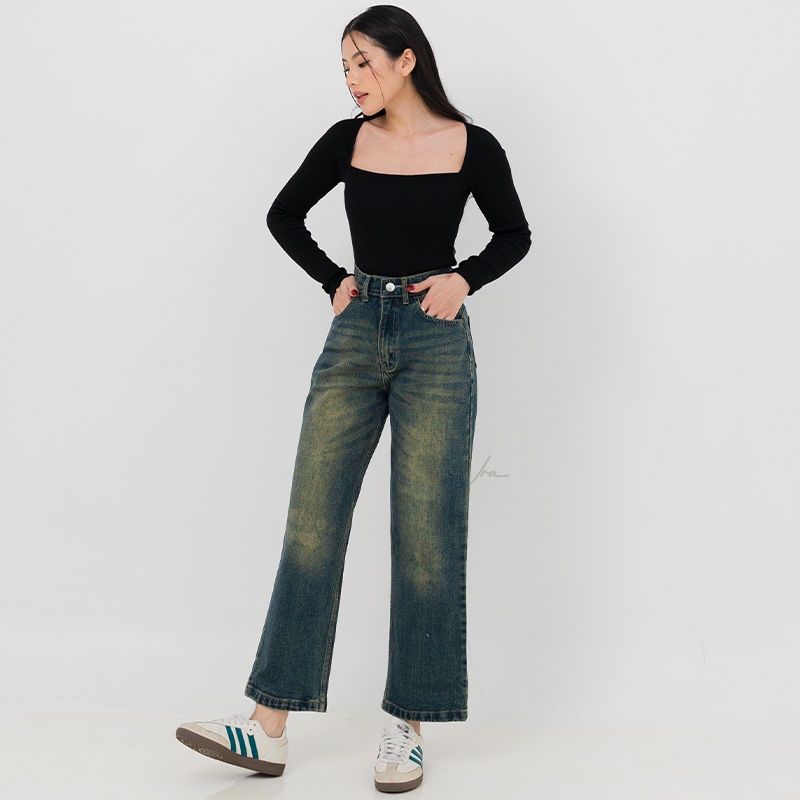 My LaVra Celana Loose Jeans Wanita Highwaist Retro Yellow Tint