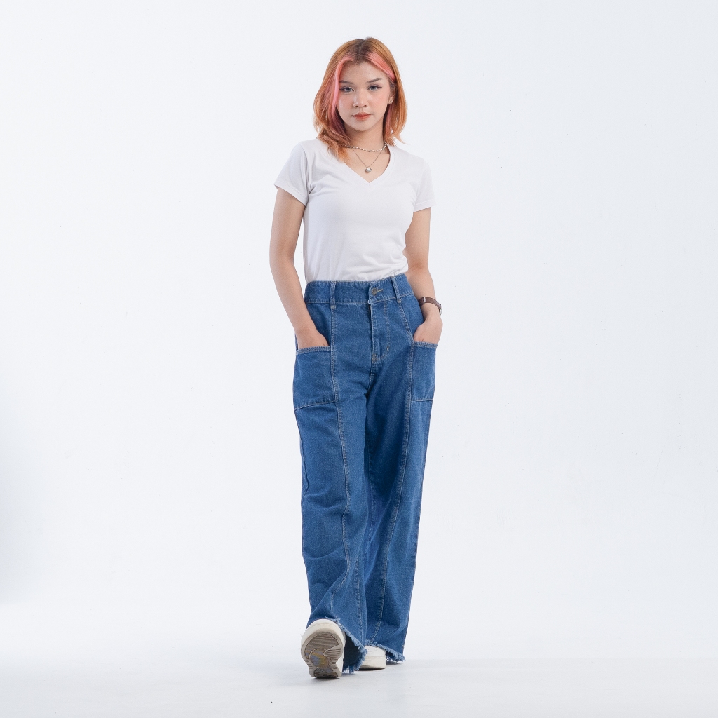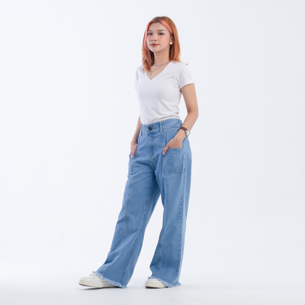 DLINE Celana Kulot Jeans Panjang Rawis Wanita Pinggang Belakang Karet Audrina Jeans