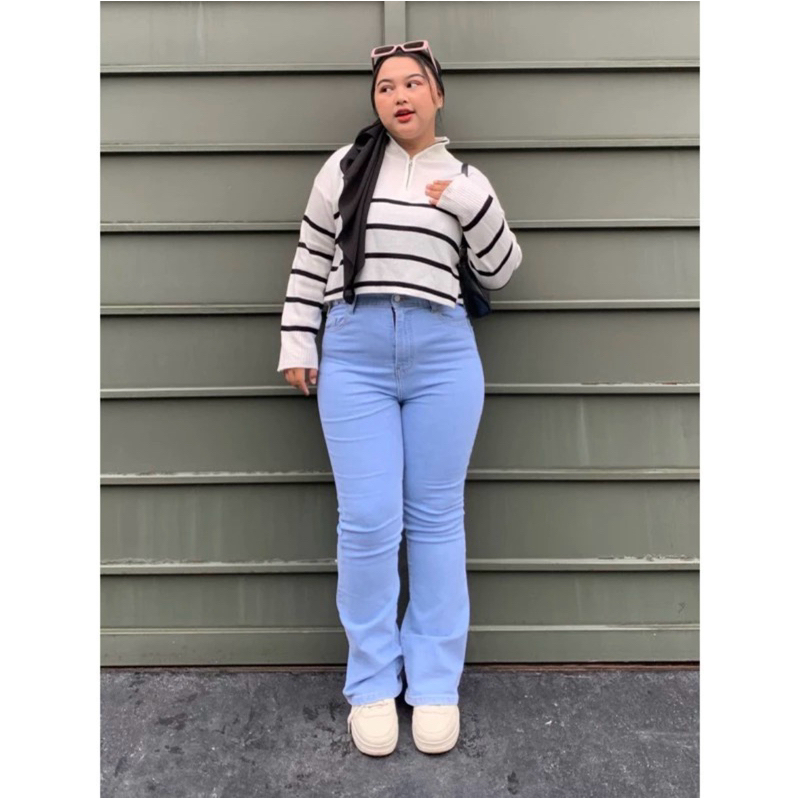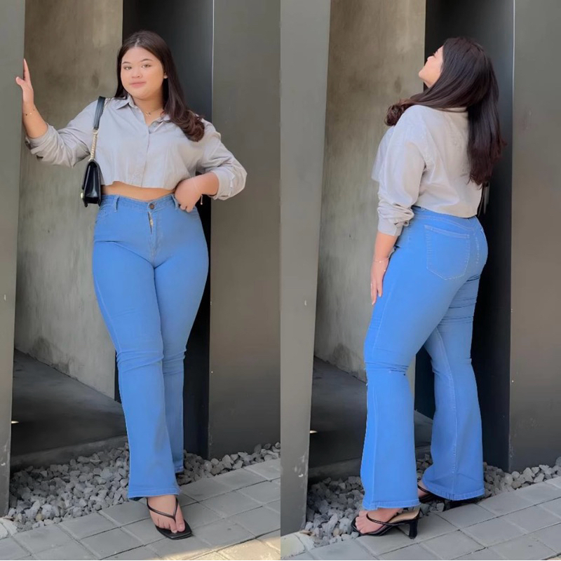 Fatheena Fashion - Celana Cutbray Jumbo Jeans Premium | High Waist Jumbo Cutbray Streach | Cutbray Jeans Wanita Jumbo| Cutbray Jumbo