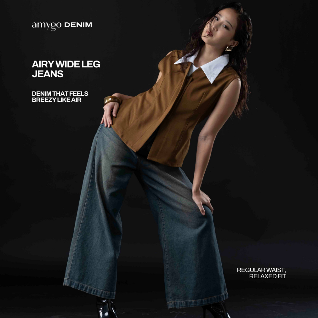 Amygo Store - Airy Wide Leg Jeans | Bawahan Wanita | Celana Jeans | Denim | Kulot Jeans | High Waist