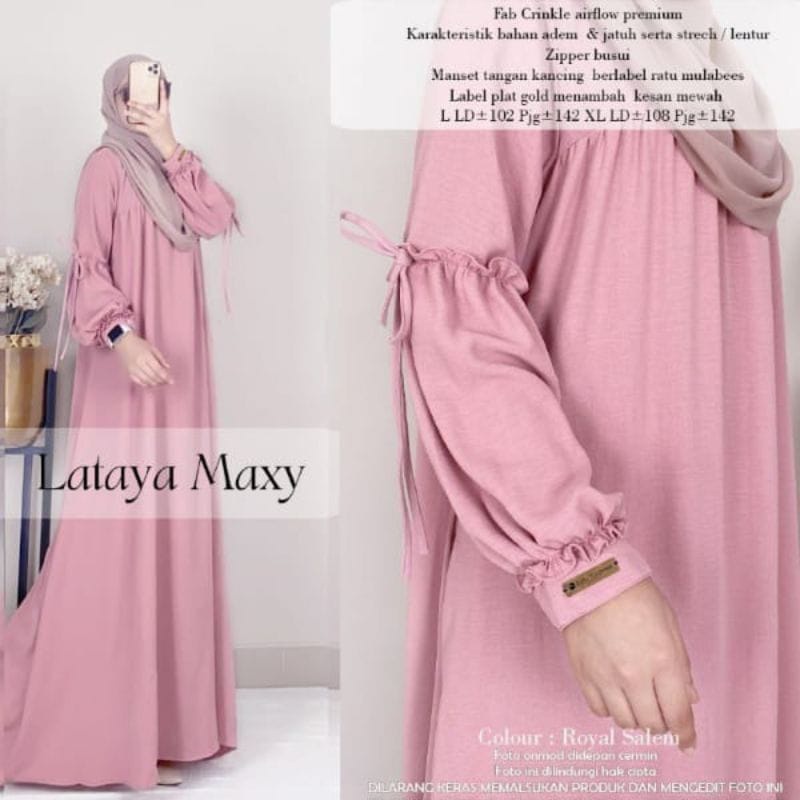 Dizzah Gamisku Dress LATAYA MAXY Cringkle Airflow Gamis Polos Bahan kringkle premium LD 110- 120 Gamis Wanita Busui Friendly