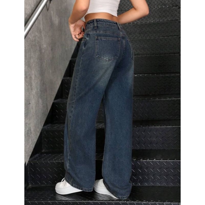 Celana Jeans Wanita High Waist Wide Leg Loose Fit Vintage Korea Streetwear Baggy Pants Kekinian