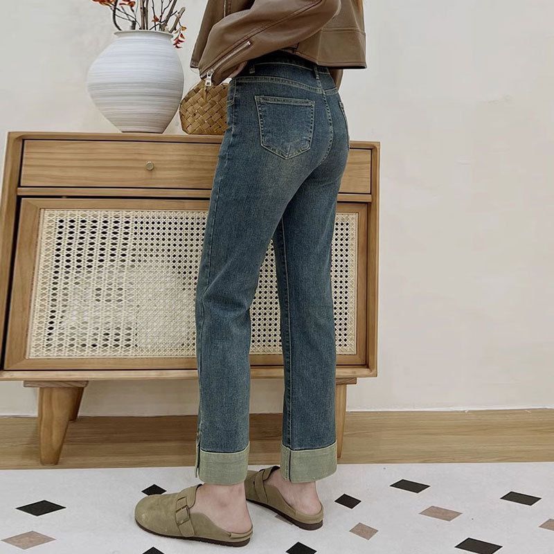 Shenel Celana Jeans High Waist 8034 Jeans Kulot Highwaist Stretch Denim Kaki Lipat Jeans Panjang 7/8