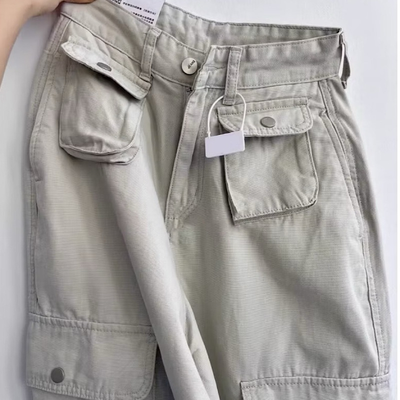 Celana Cargo Panjang Wanita Highwaist - Cargo Denim Pasir Putih Krem Cargo LULU