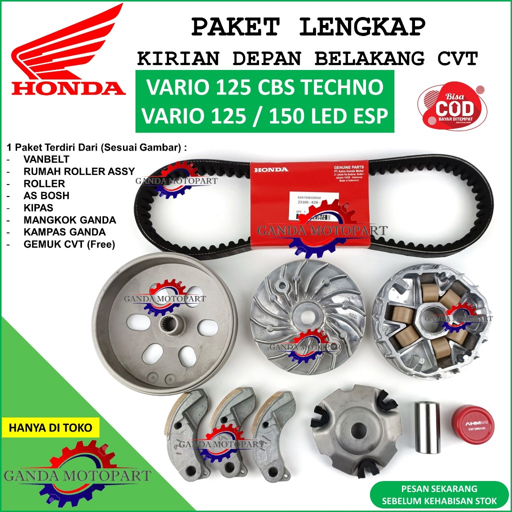 PAKET MANGKOK KAMPAS GANDA VANBELT KIPAS RUMAH ROLLER ASSY VARIO 125 TECHNO 125 150 LED ESP - KZR K35 K36