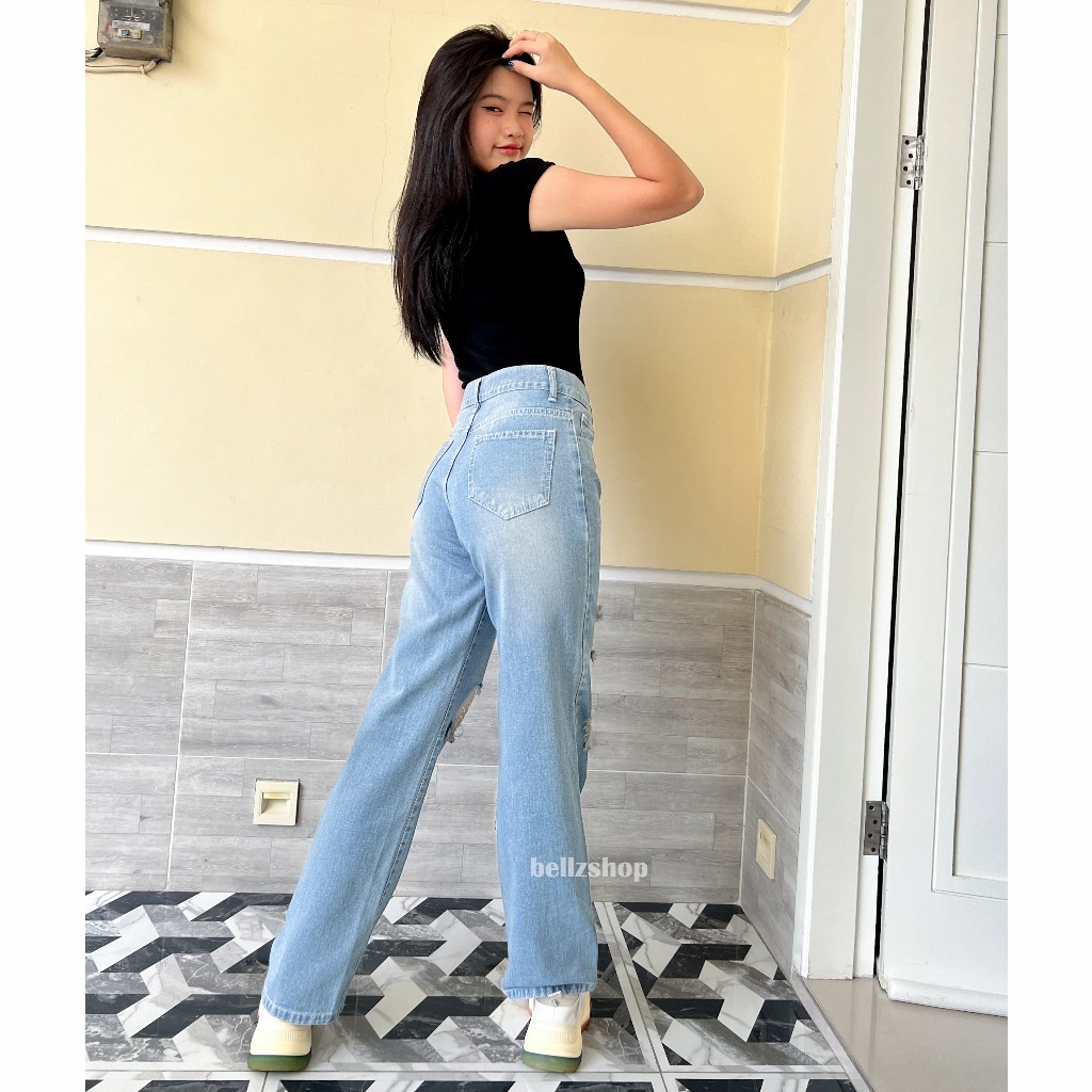 Celana Kulot Highwaist Jeans Ripped Wanita Panjang Sobek Tembus Premium Adeline Size 27 sd 30
