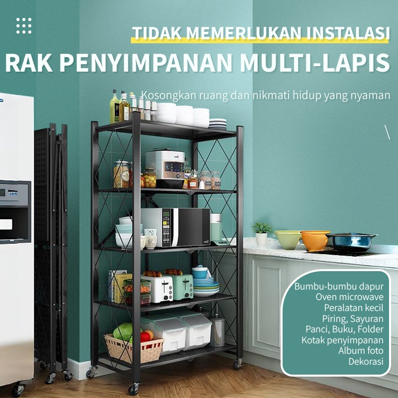 YONEZAWARak Dapur Rak Lipat Dengan Roda Rak Besi Siku 5 Susun Rak peralatan Rak Bumbu Multi fungsi Rak Dapur Susun Rak Oven Rak