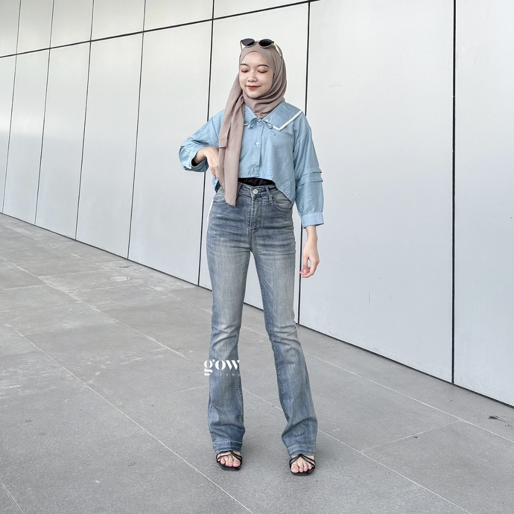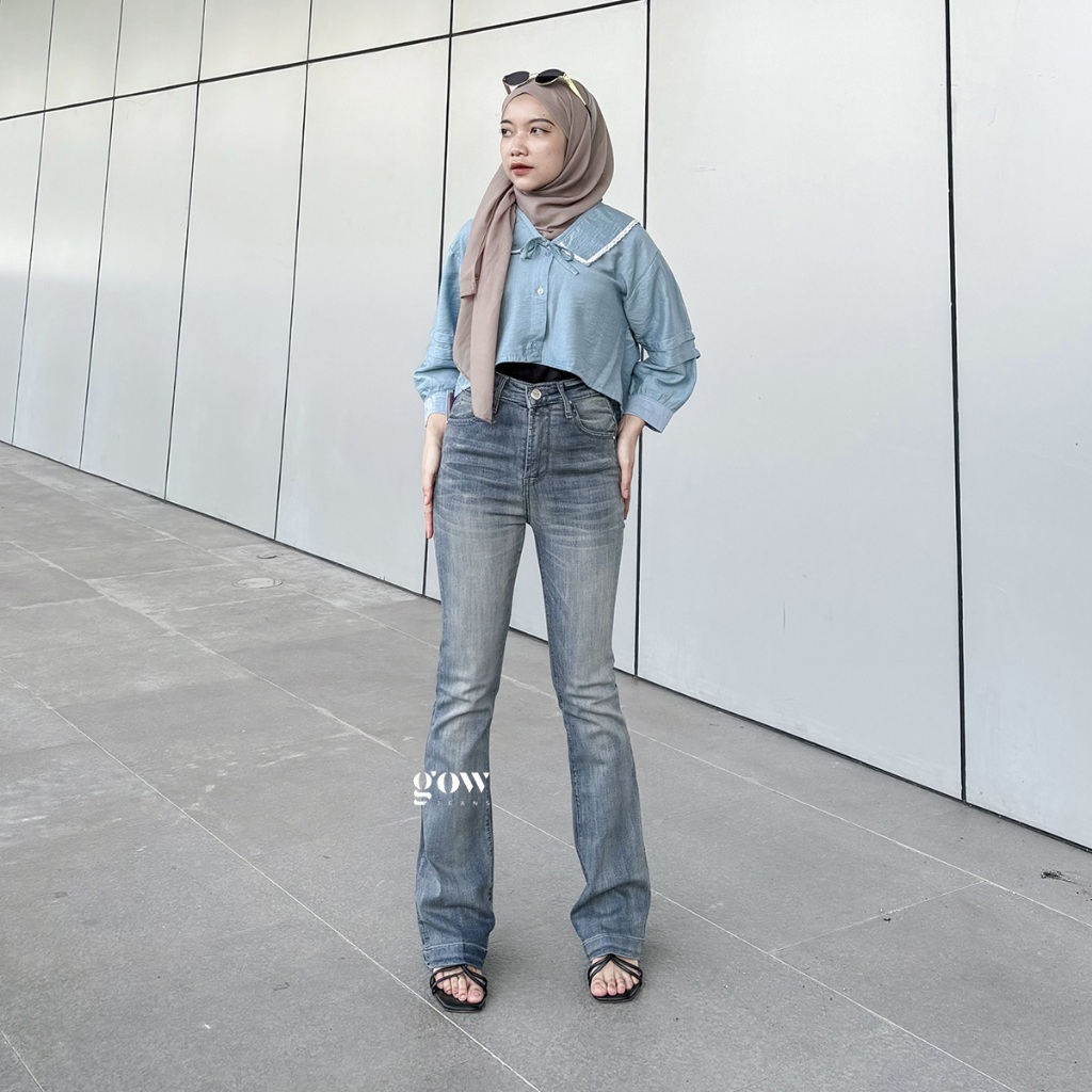 GOWJEANS - Grace Highwaist Cutbray Jeans Stretch Tint Whisker Size 27 - 34 Celana Panjang Wanita