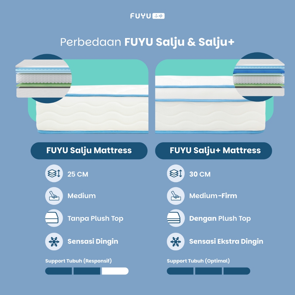 FUYU Salju Plus Kasur Dingin Pocket Spring Bed 30 cm Plush Top Ukuran 180x200 King Fuji Foam Free Bantal