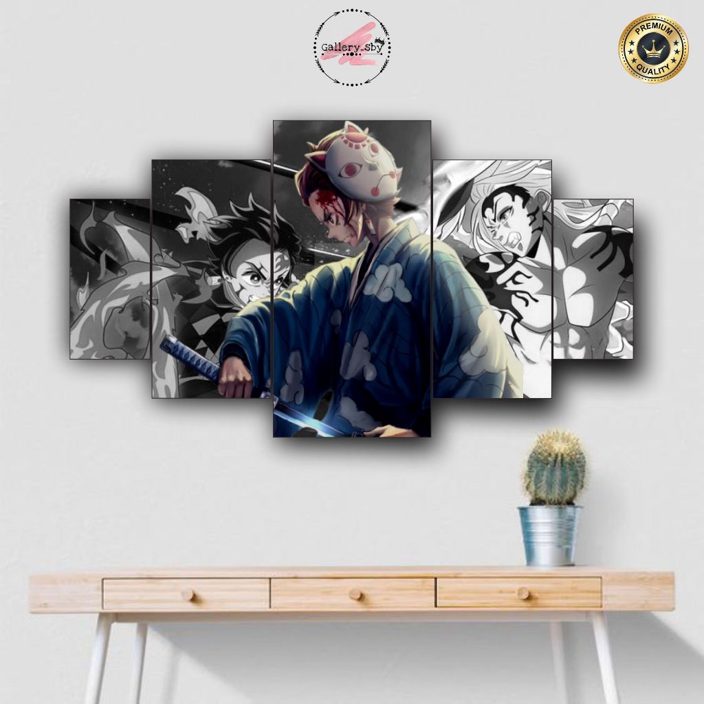 1 SET Pajangan Dinding TANJIRO KOMANDO DEMON SLAYER Hiasan Dinding Aestentic Isi 5 pcs Poster Kayu