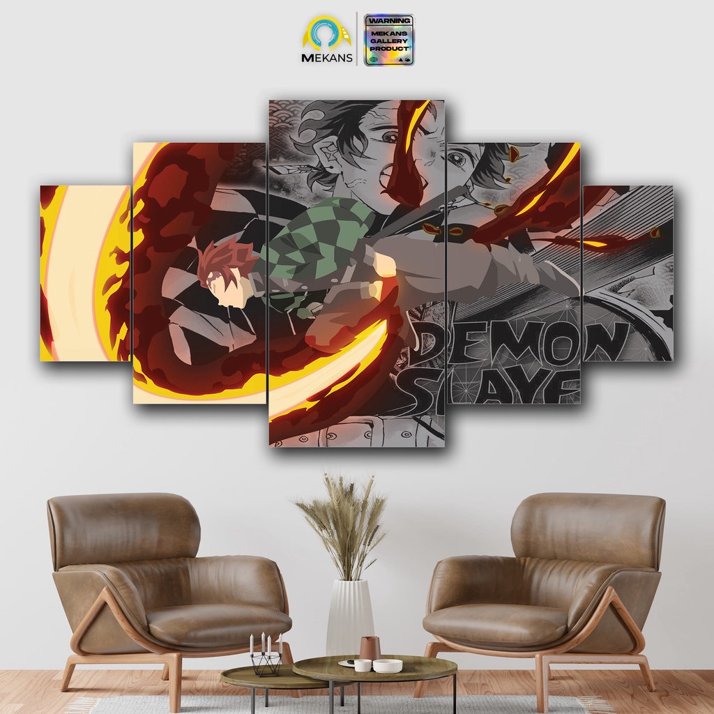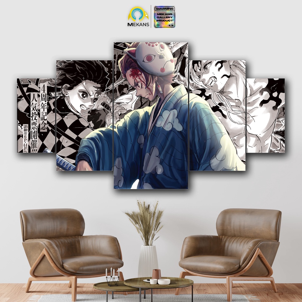 MEKANS 1 SET Pajangan Hiasan dinding DEMON SLAYER TANJIRO KAMADO Poster Kayu Wall Decor 5pcs