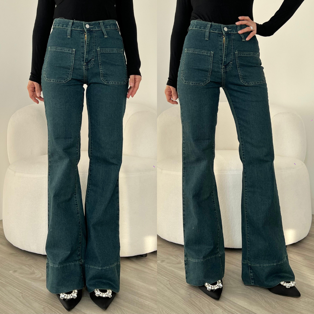 LA GRACE - Nara High Waist Cutbray Jeans Celana Flare panjang Melar Wanita Stretch [90-91-92-108]