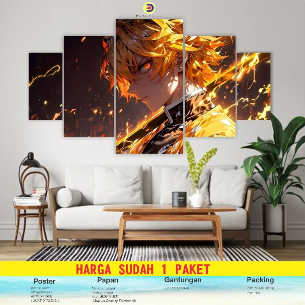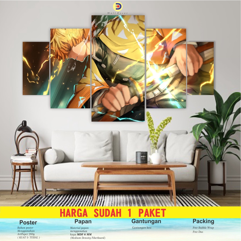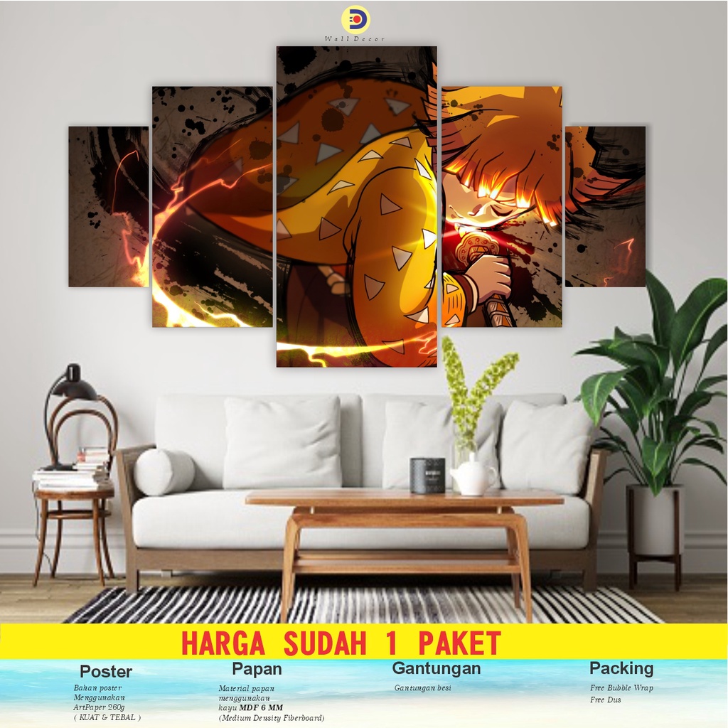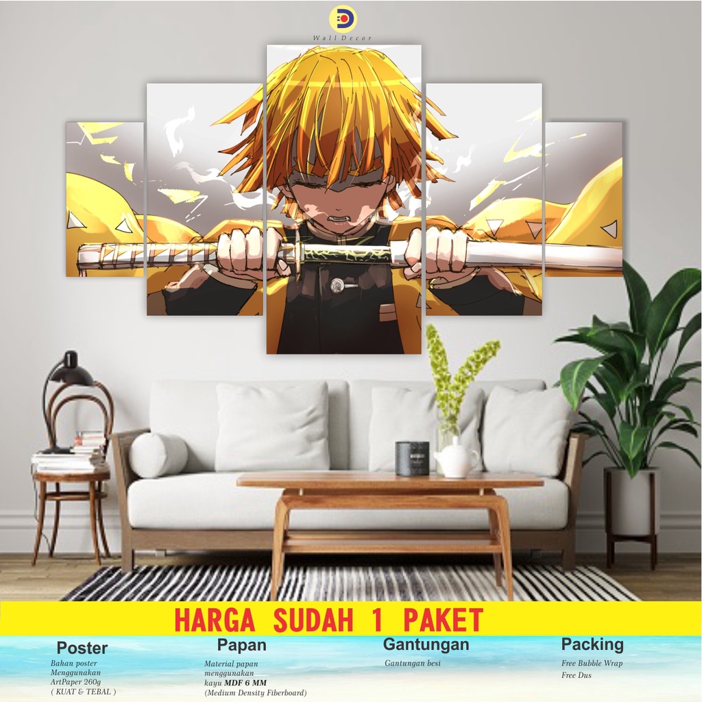 CIMON 1set Poster Kayu Anime Kimetsu No Yaiba Pajangan Hiasan Dinding Zenitsu 5pcs