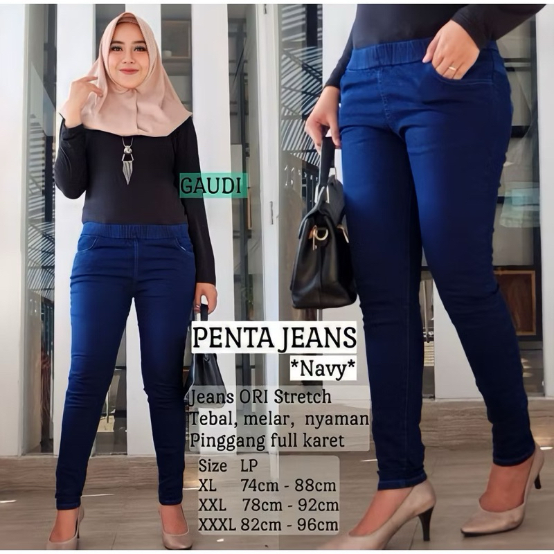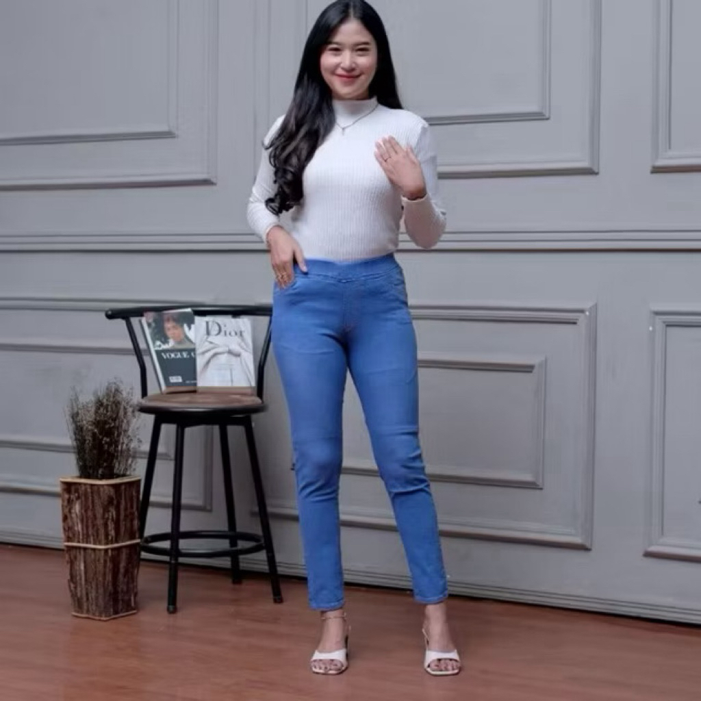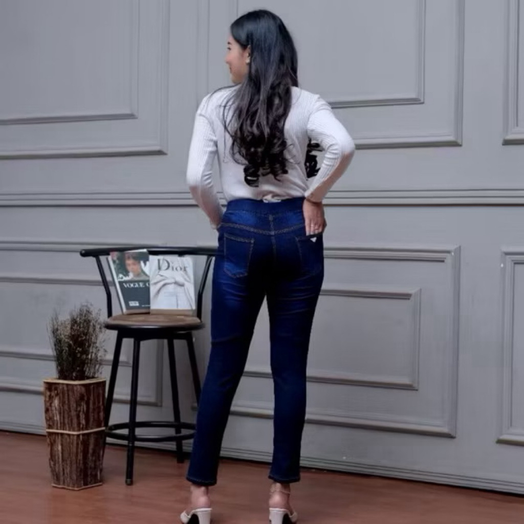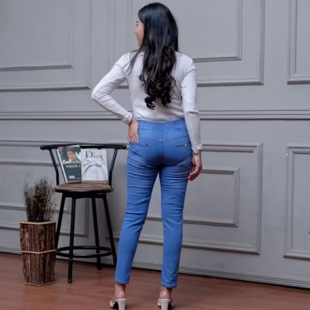Celana Jeans Wanita pinggang full karet Strecht- Celana Jeans slimfit melar Wanita pinggang karet full strecht melar Pinggang