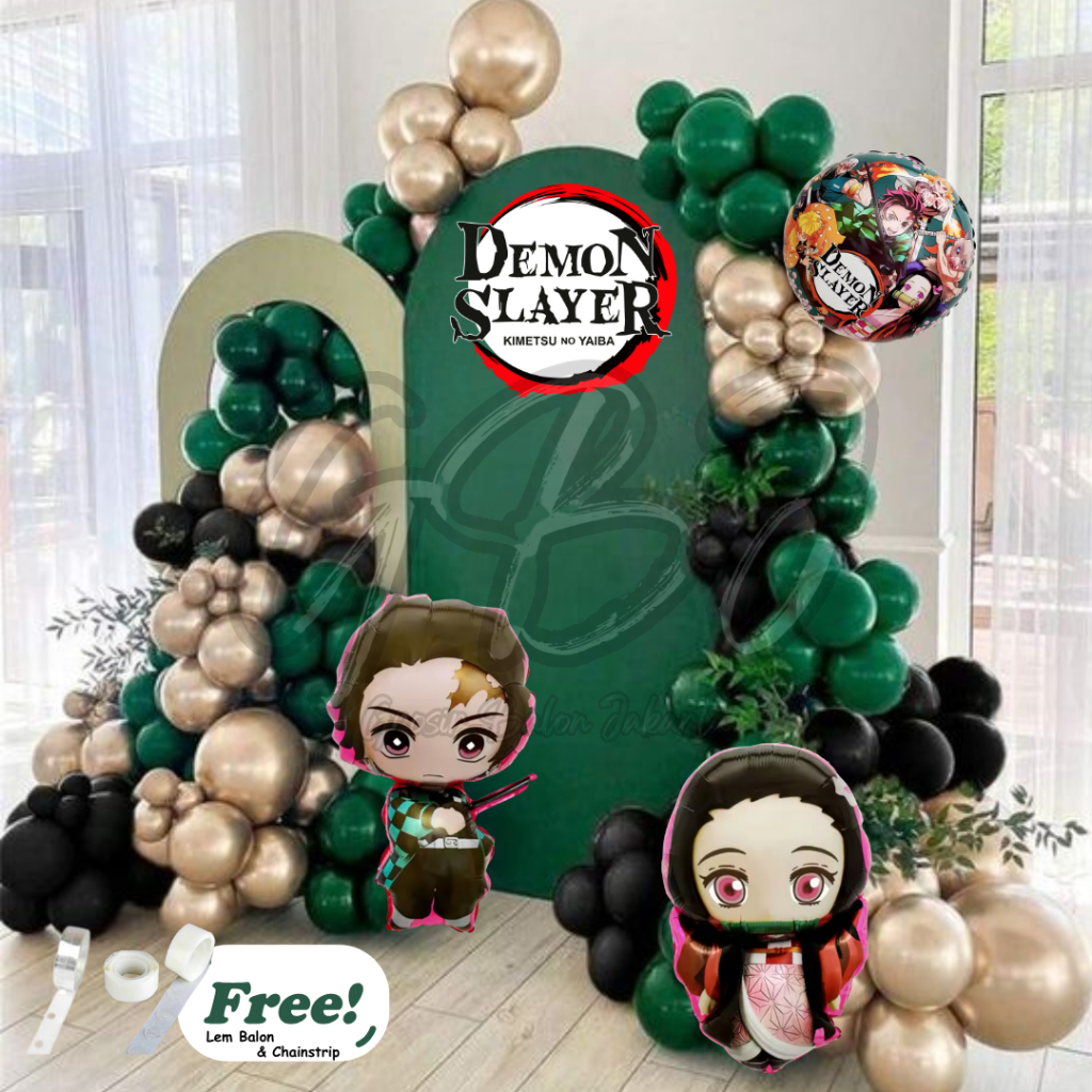 PAKET PREMIUM Dekorasi Ulang Demon Slayer Tanjiro Nezuko Kamado Anime Kimetsu no Yaiba Garland Set Isi 85pcs P062