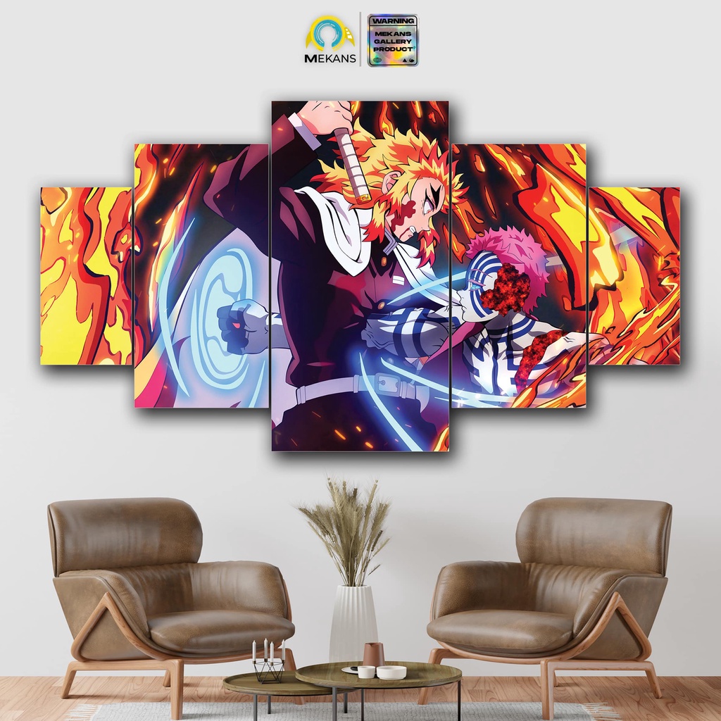 MEKANS 1 SET Pajangan Hiasan dinding DEMON SLAYER EDITION AKAZA VS RENGOKU Poster Kayu Wall Decor 5pcs