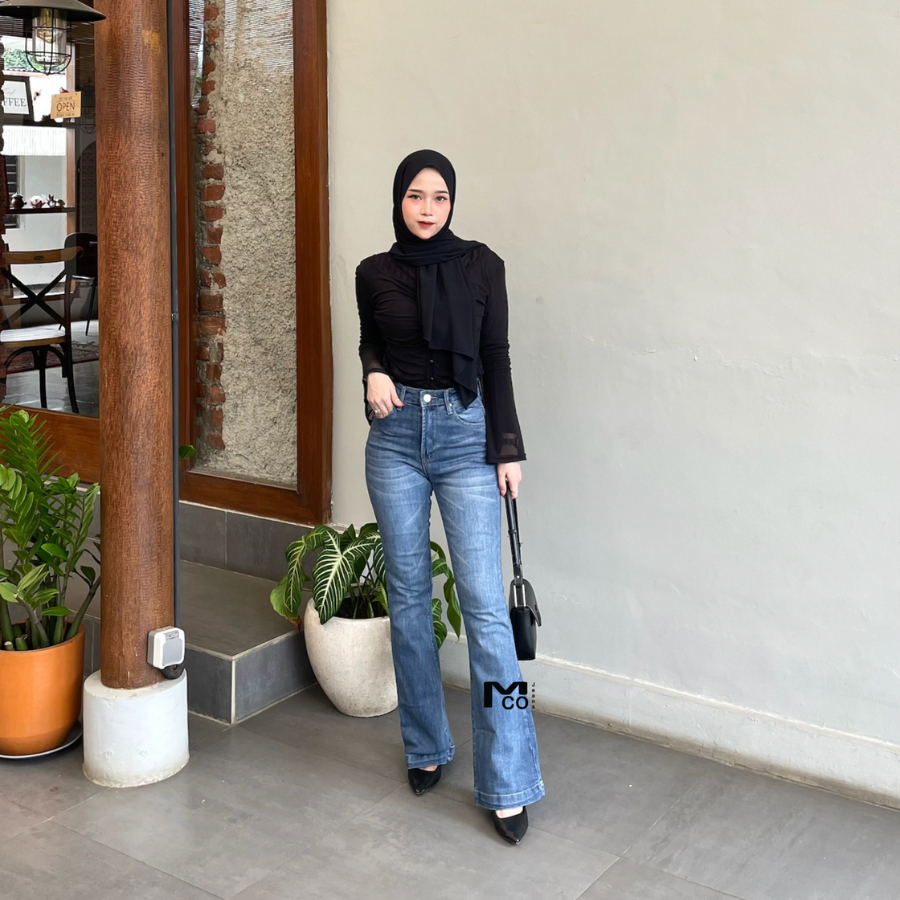 MCOJEANS - Celana Ultra Highwaist Cutbray Snow Abu Polos Panjang Basic Jeans Wanita - Celana Denim Cewek