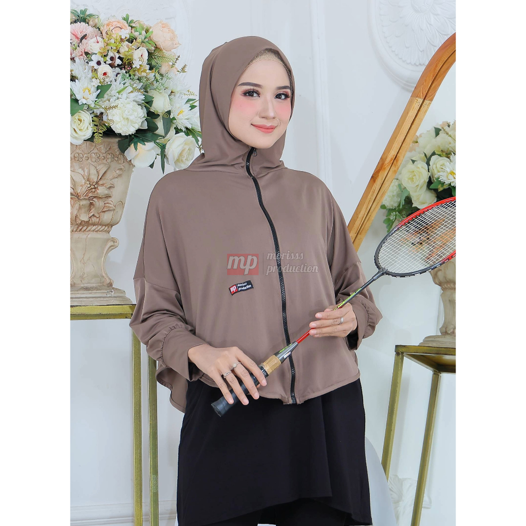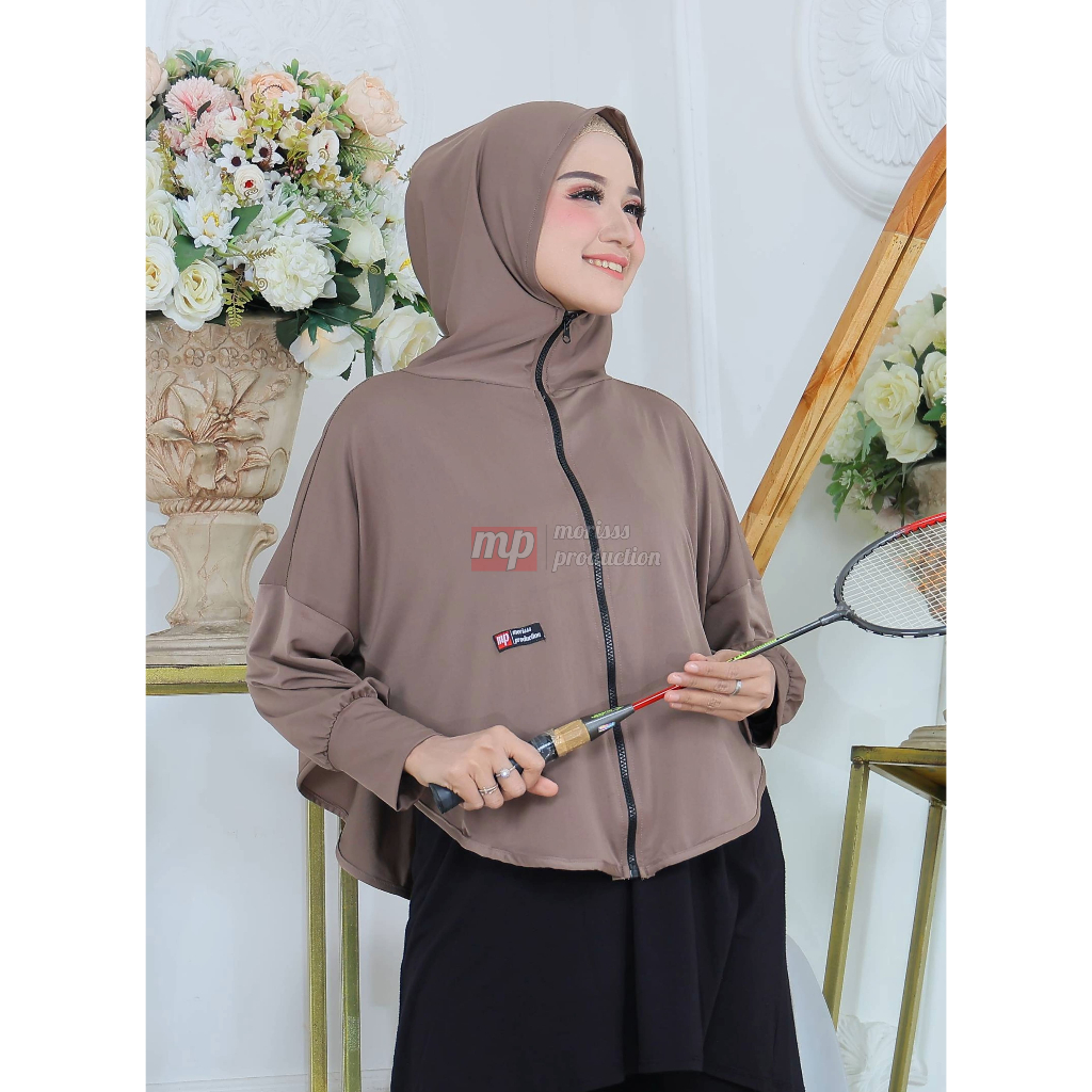 Moris Production : Hijab Jaket Outer Olahraga Crop Top Oversize Ukuran XL Lengan Panjang Nonpad Ada Resleting