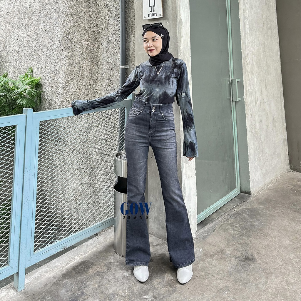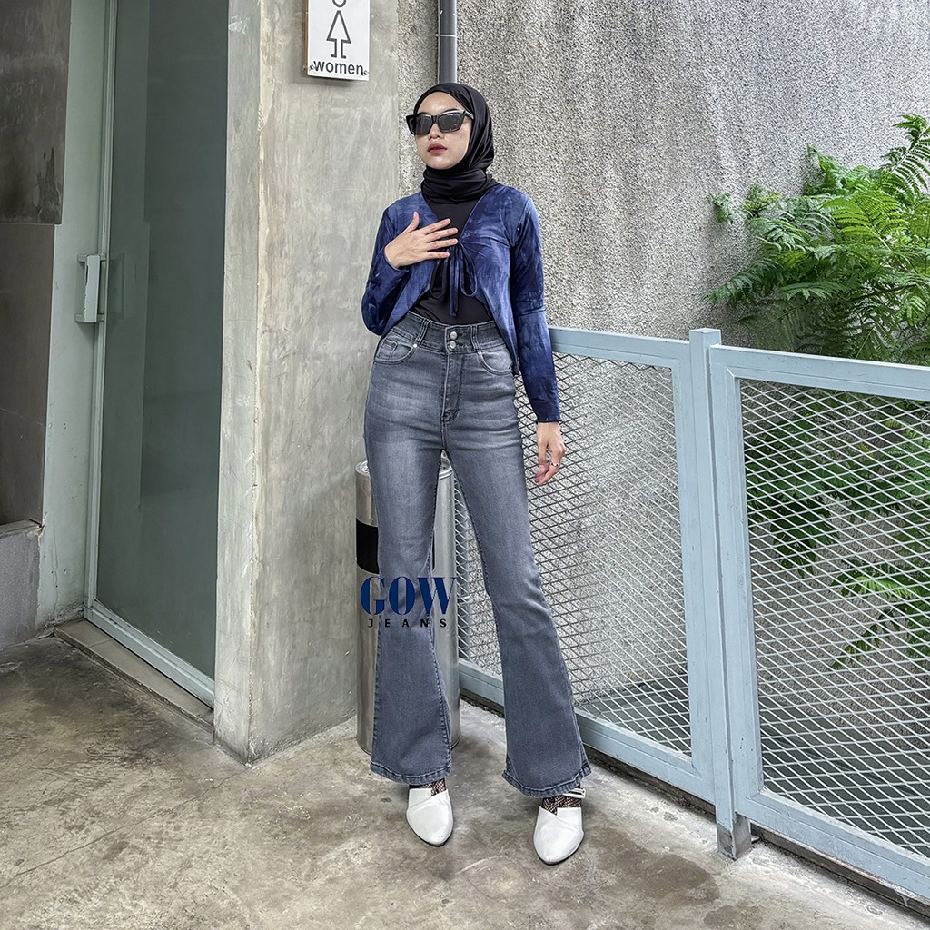 GOWJEANS - Ultra Highwaist Cutbray Jeans Strech Grey Wash Slim-fitting Double Buttons