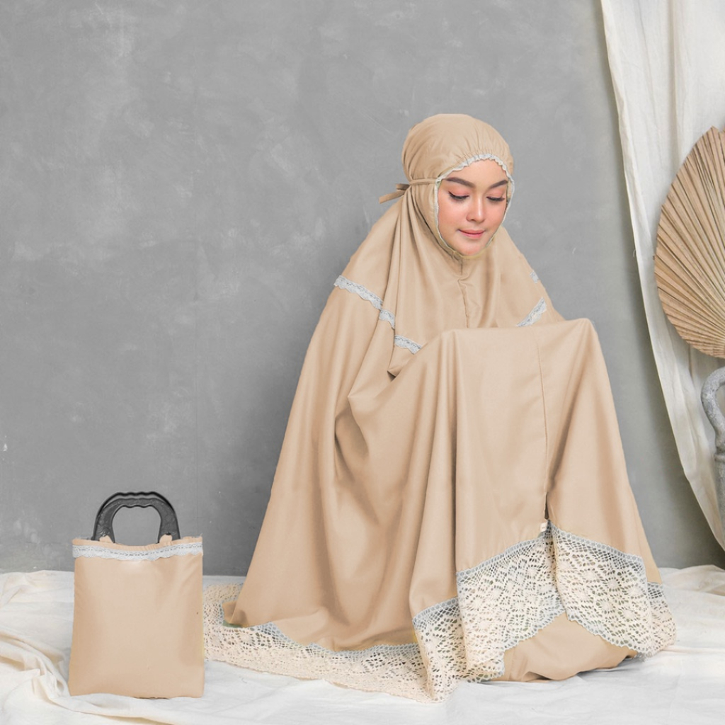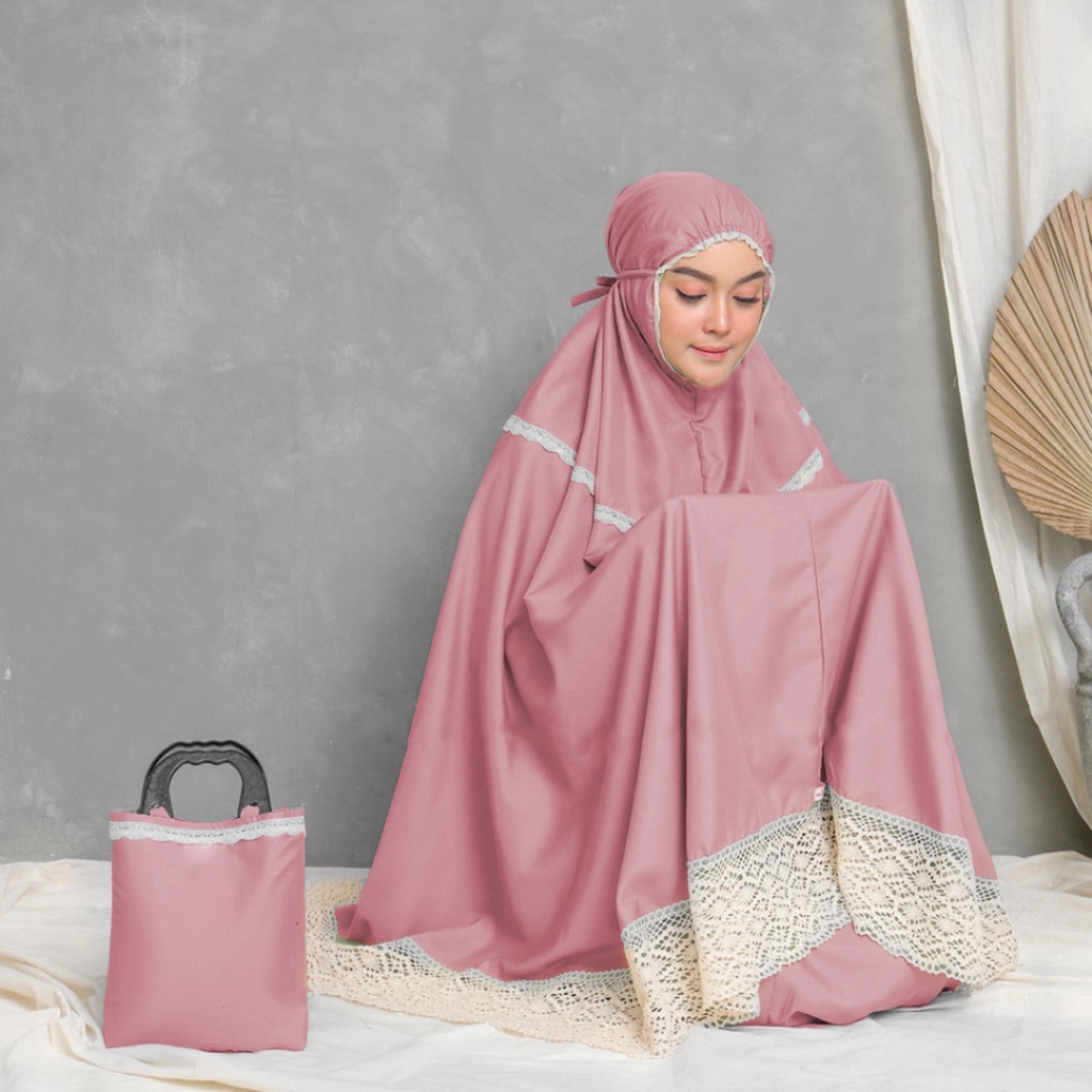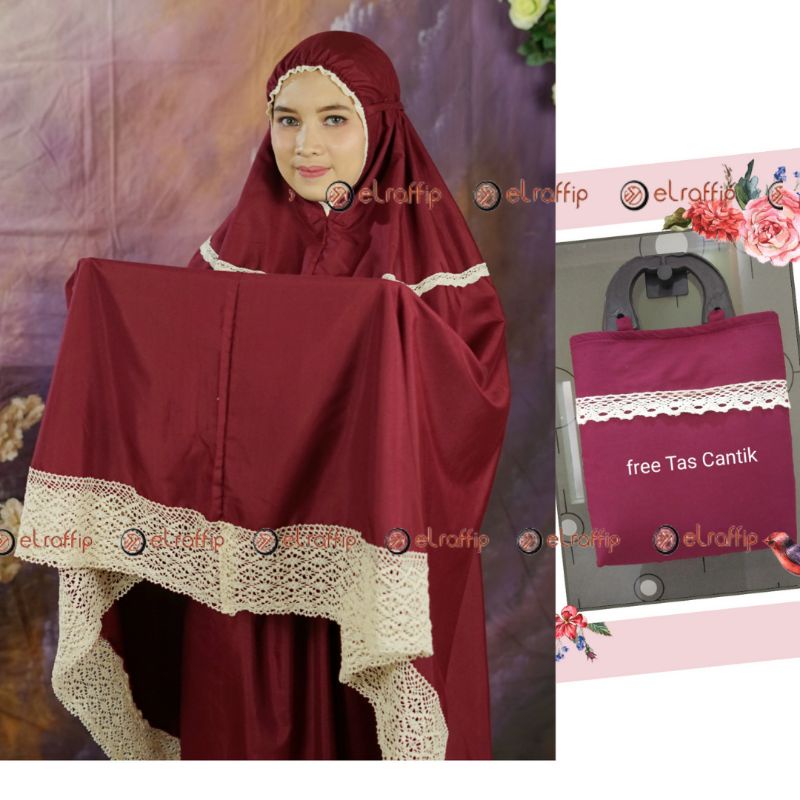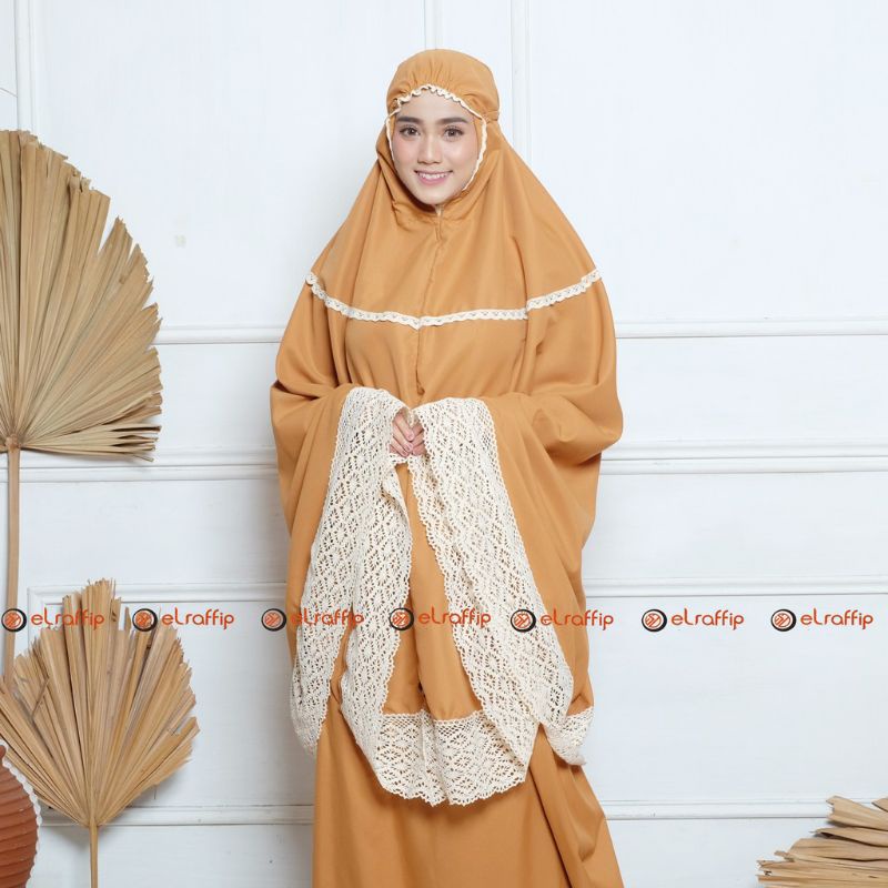elraffip-Mukena Dewasa Katun Polos Kombinasi Renda Rajut ALMAHIRA Series