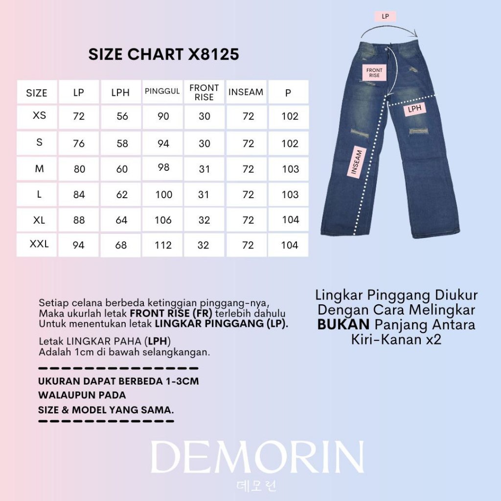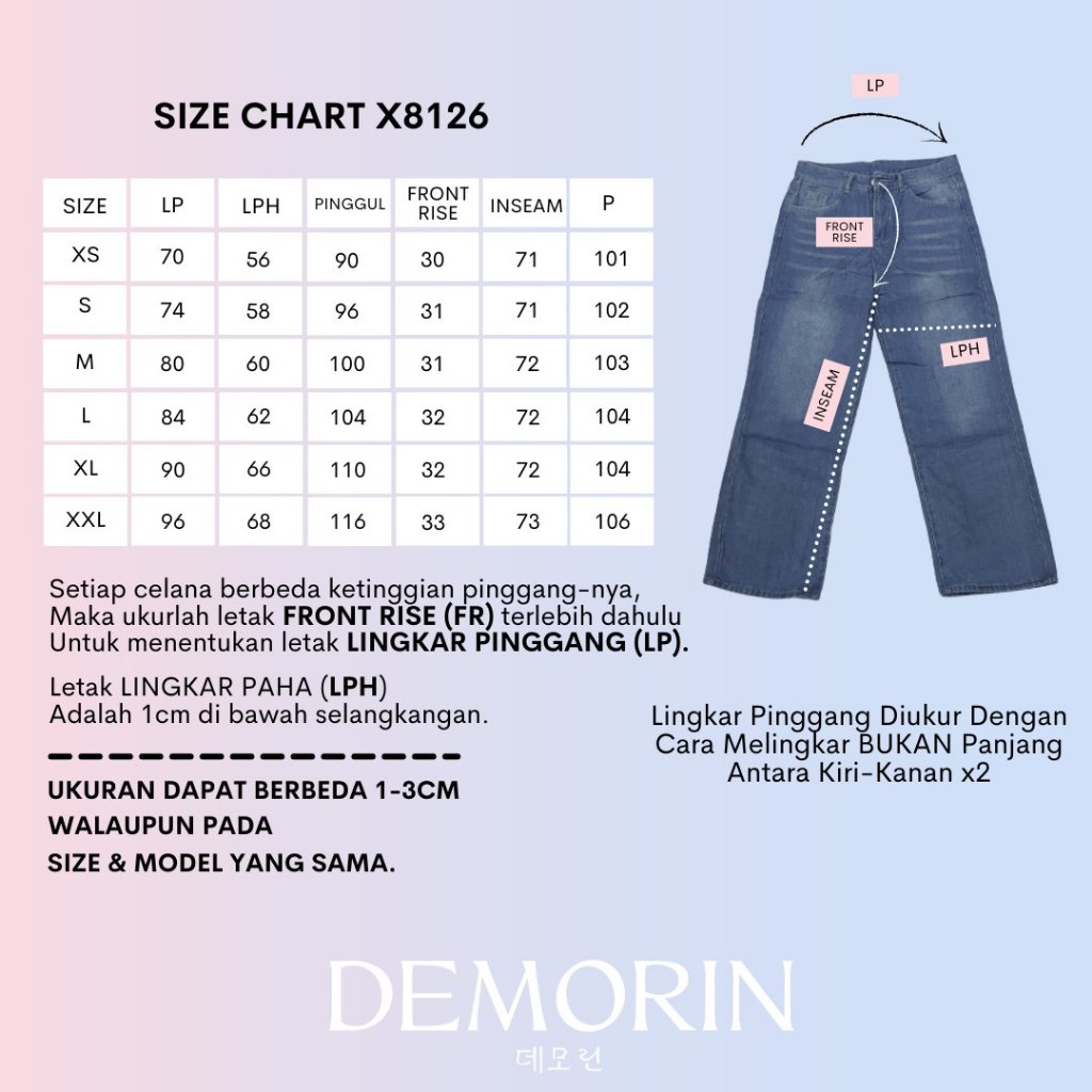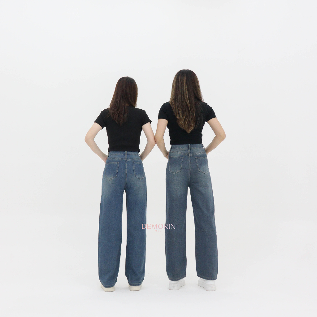 DEMORIN|Celana Panjang Jeans Wanita High Waist Loose Denim Baggy Cewek Retro Blue |X8125 – X8126|